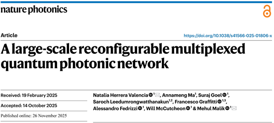 12/24/2025,光纖在線訊,來(lái)自赫瑞瓦特大學(xué)光子與量子科學(xué)研究所的研究團(tuán)隊(duì)在《Nature Photonics》發(fā)表題為《A large-scale reconfigurable multiplexed quantum photonic network》的研究成果,展示了一種原型化的可重構(gòu)多路復(fù)用量子光子網(wǎng)絡(luò)架構(gòu),實(shí)現(xiàn)了在兩個(gè)本地四用戶量子網(wǎng)絡(luò)之間靈活路由與交換量子糾纏,為構(gòu)建大規(guī)模、可擴(kuò)展的量子網(wǎng)絡(luò)提供了關(guān)鍵實(shí)驗(yàn)驗(yàn)證。
