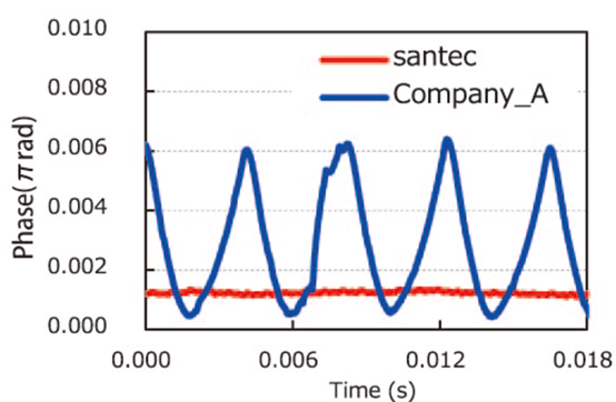 Santec 采用模擬尋址技術(shù),實現(xiàn)了極高的相位穩(wěn)定度: